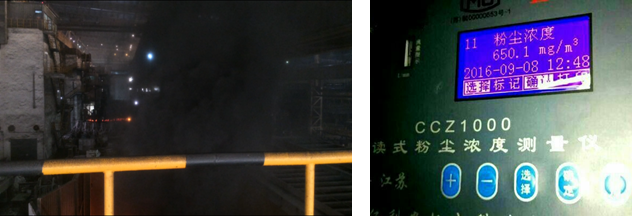 During the dumping and unloading operation of Xingcheng Special Steel's No. 1 steelmaking tundish, intermittent dust was very serious, and the measured dust concentration on site reached more than 600mg/m3. After the dumping and unloading operation, serious dust pollution will be caused to the environment of this post and the surrounding area.